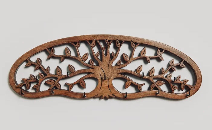 Easy to hang and comes with all instructions, templates and hardware to hang on your wall. Durable Wood and Compact size is 15 inches wide and has 11 hooks.