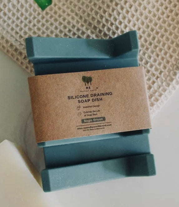 The unique self-draining, waterfall design of this silicone soap dish directs excess water straight into the sink or shower, prolonging the life of bar soap!